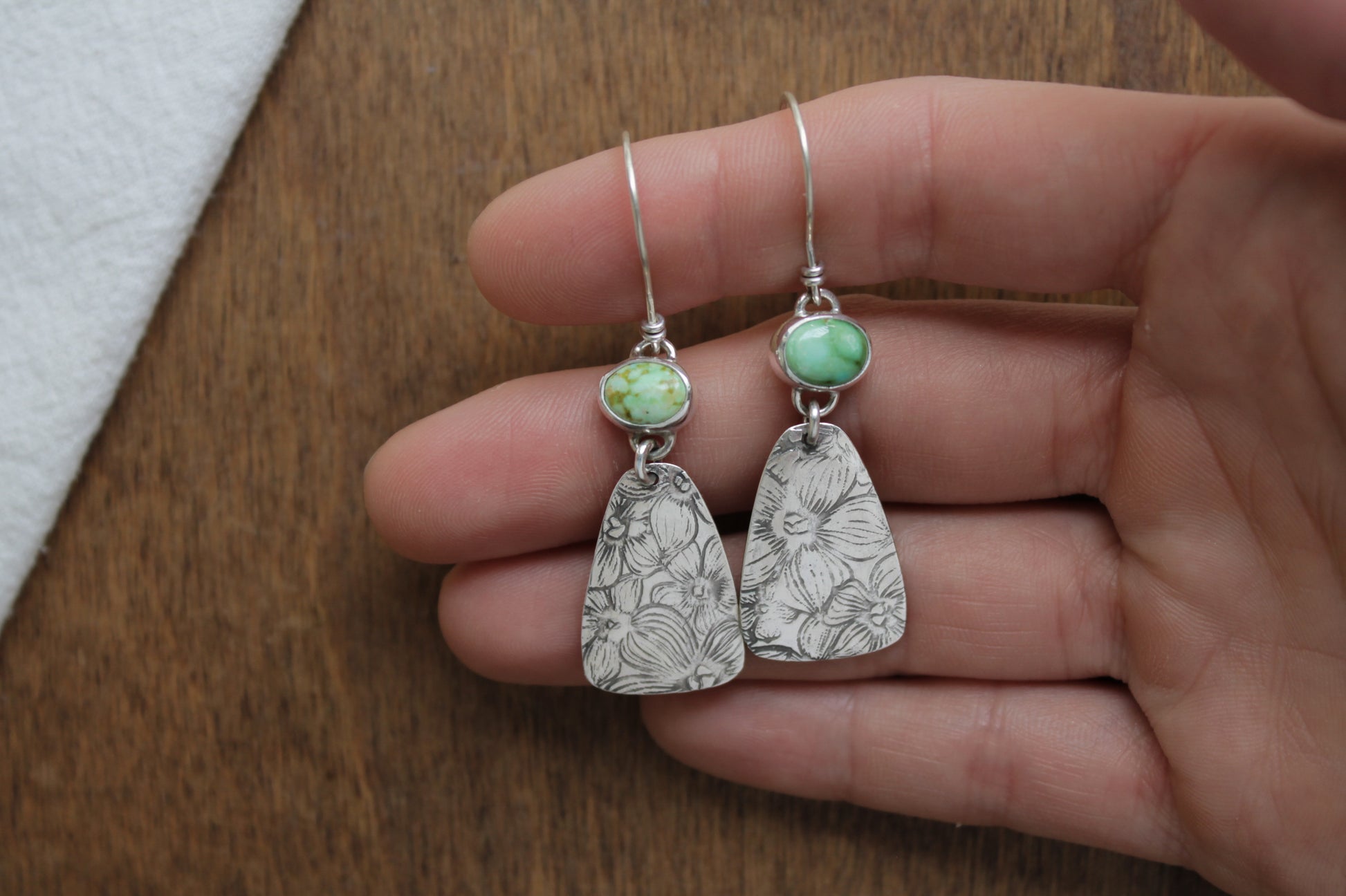 Pressed Flower Shield Earrings | Sonoran Gold Turquoise
